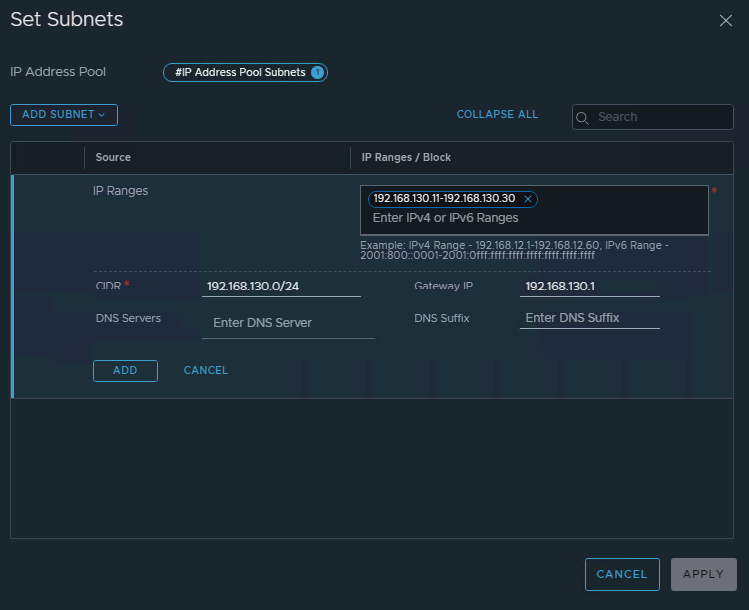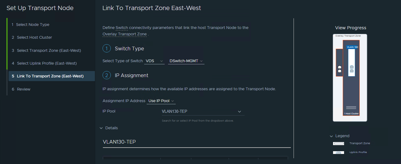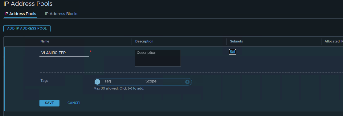 - Configure IP Address Pools for the TEP both Host nodes and Edge Nodes.