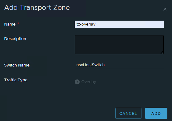 - Create New Transport Zone for Peering. In my lab, I only create single TZ since the target peering only have single VLAN. Name the Switch Name different with the Host TZ switch.