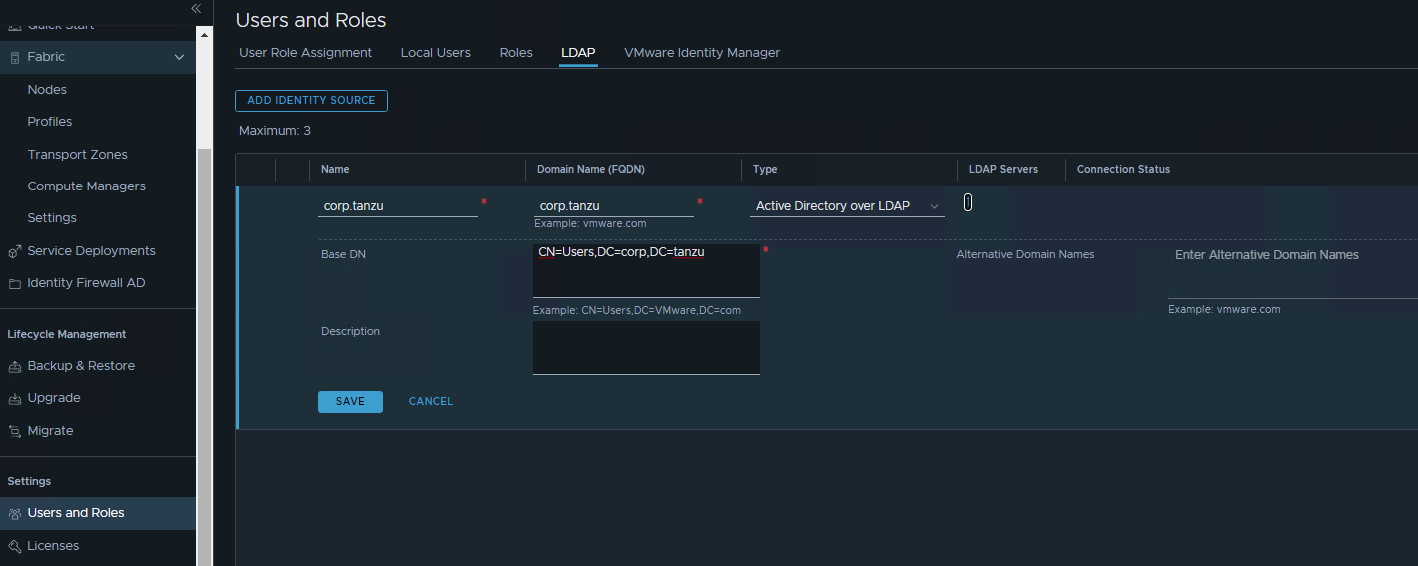 - Configure access from NSX to vCenter. It should use service account. In my lab, I use AD user service account. This service account is required, so if it’s compromised, easier to control from AD user.