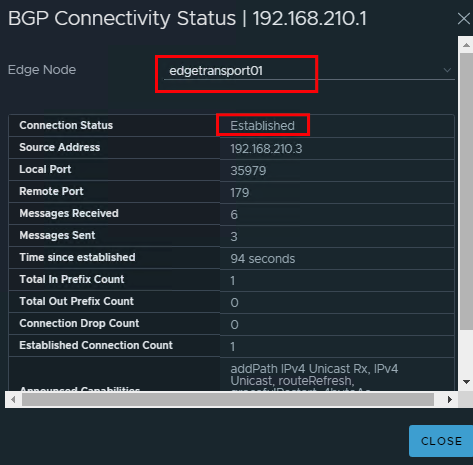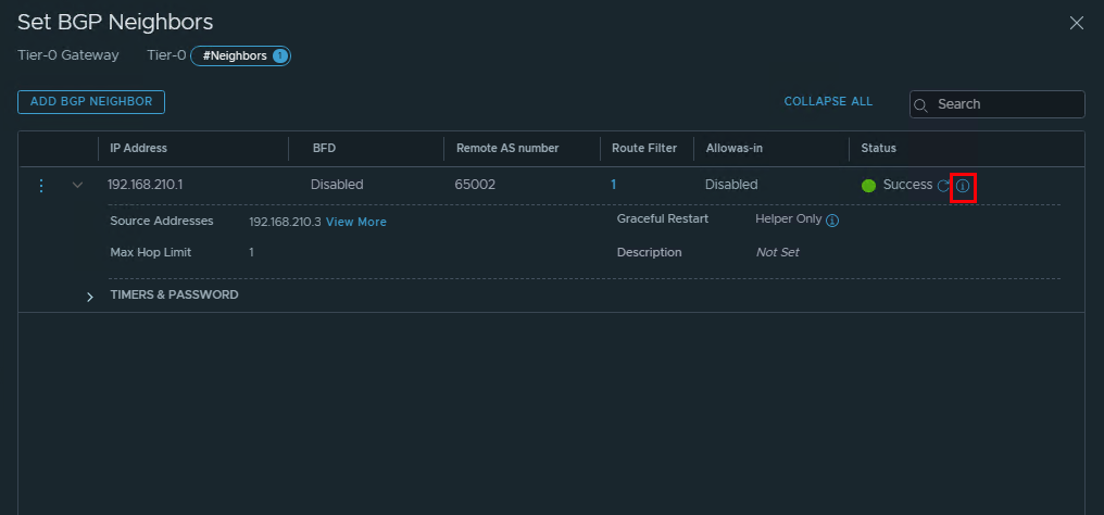 Accepted peering interface from NSX are 192.168.210.3 and 192.168.210.4